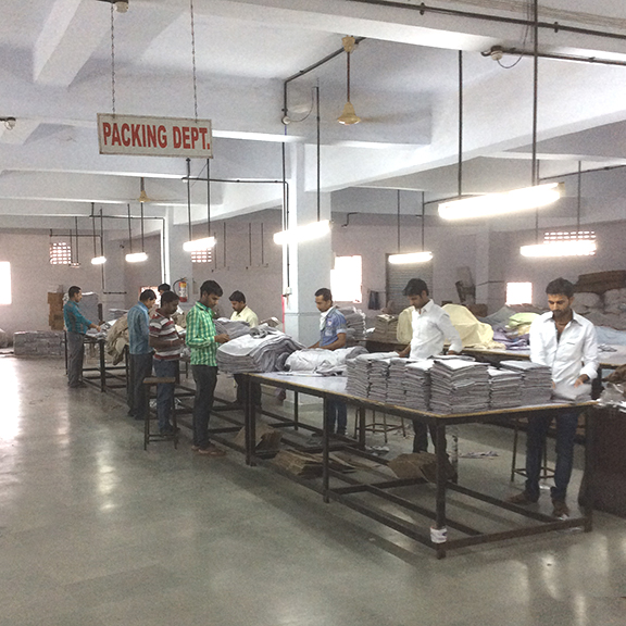 Our factory is located at Bhiwandi with total area of approx. 25,000 Sq Ft and all our manufacturing facilities from fabric checking, cutting, sewing,quality checking, packing are done under one roof.